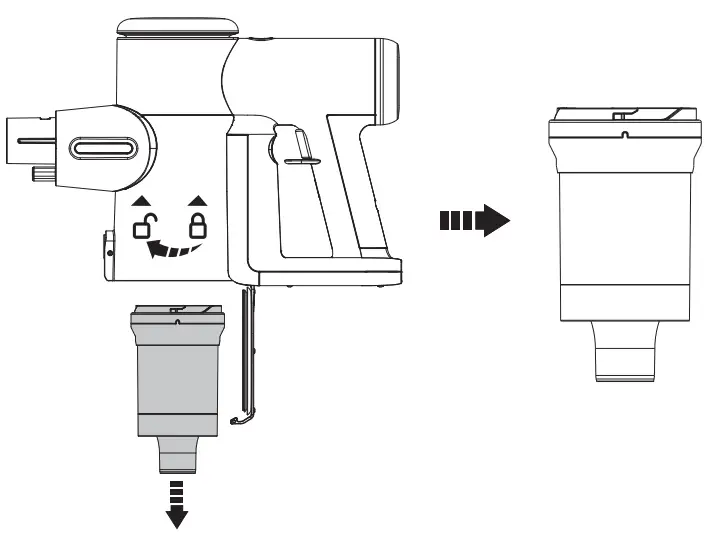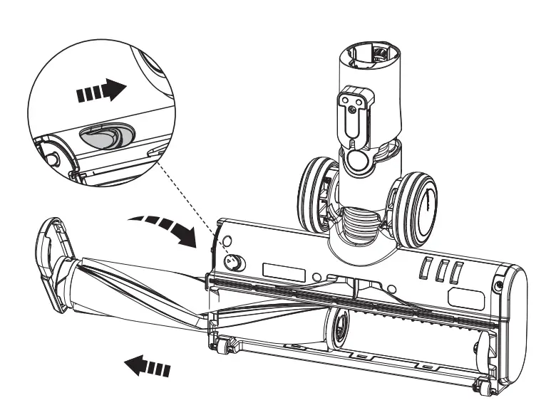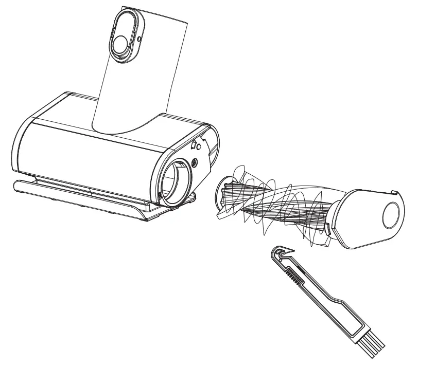 With the power off, slide the switch to open the brush roller end cover, and rotate it counter-clockwise to pull out the brush roller.