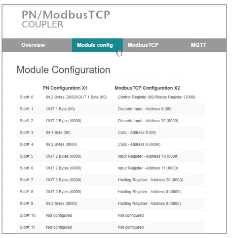 9 Web interface of PN/ModbusTCP Coupler