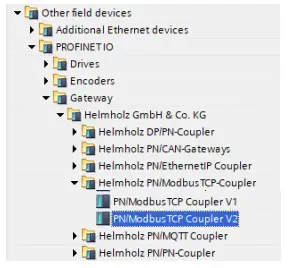 For the PN/ModbusTCP coupler with order number 700-159- 3MB01 select the “PN/ModbusTCP Coupler V1