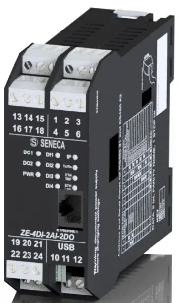 SENECA ZE-4DI-2AI-2DO Modbus TCP or IP Input or Output Module