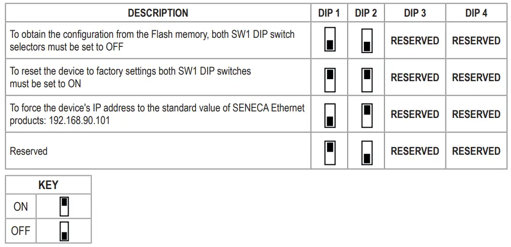 Through DIP-SWITCH-SW1 it is possible to set the IP configuration of the device: