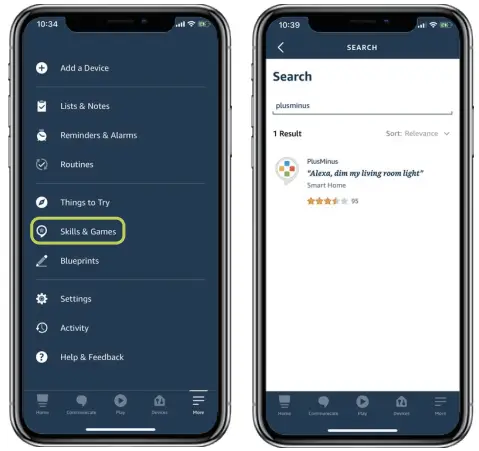 - Search “PlusMinus” skill and click “ENABLE”;