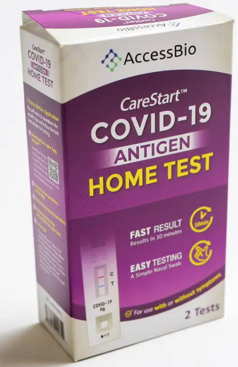 The CareStartTM COVID-19 Antigen Home Test is authorized for non-prescription self-use and/or, as applicable for an adult lay user testing another person aged 2 years or older. The CareStartTM COVID-19 Antigen Home Test is only for use under the Food and Drug Administration’s Emergency Use Authorization.