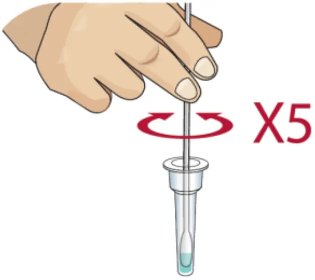 - Place the swab into the extraction vial. Rotate the swab vigorously at least 5 times. vigorously at least 5 times.
