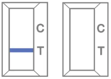 “T” indicates COVID-19 positive. The presence of one colored line in the control line region “C” indicates COVID-19 negative. No appearance of a colored line in the control region “C” indicates an invalid test. Results should not be read after 15 minutes.