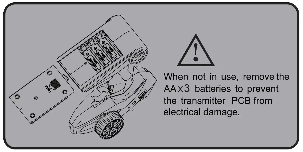 - Never allow transmitter batteries to run low as it may cause loss of vehicle control.