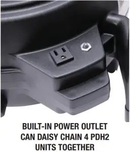 The PDH2 model can be daisy chained with up to 4 units on a dedicated 15 amp circuit with the built in power outlet.