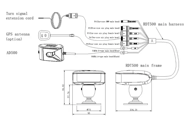 The RD-CAM-AD500 is an ADAS camera for road ahead, which is targeted road in front to monitor the road ahead. Video data obtained will be sent to RDT500B machine for analyzing and processing. With bottom outlet, it’s generally applicable for large vehicles. While RD-CAM-AD501 is generally applicable for small passenger cars with top outlet.
