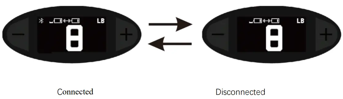 - Bluetooth icon If the Smart Dumbbell connect the Bluetooth, the icon always on/otherwise not