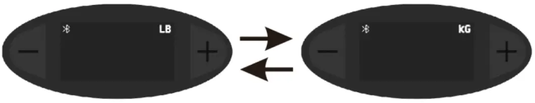 Press and hold either the [+] or [-] button for two seconds, then enter into the weight unit setting interface, the unit icon [LB] or [KG] in the upper right corner flashes, press the [+] or [-] button to switch the unit,