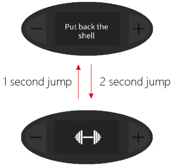 - Press the button of – or + on the base to activate the dumbbell.