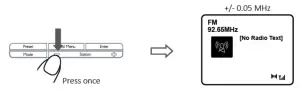| ‘Signal error’: | The listed station cannot be found. (No name.): The current station does not broadcast an identity name. |