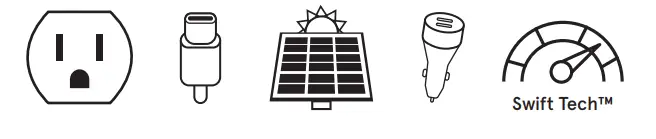 | STEP 1 Turn on the unit by pressing the DISPLAY button on the front of the power station. The LCD screen will light up. | STEP 2 Charge unit fully before first use. See the How to Charge section for details. | STEP 3 Enjoy the freedom of Off-Grid Power Anywhere! |