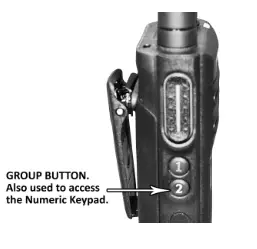 Short pressing the side button 2 to change to the desired group and there will be a voice announcement on the Group name. At the same time, the group becomes a Current group – Press PTT to start talking.