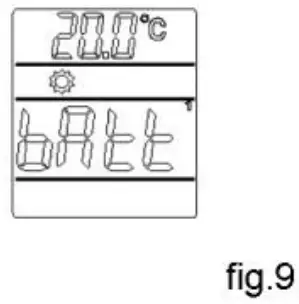 When the batteries’ tension is lower than 2.2 V, the “Battery symbol will be displayed for 3 seconds every minute in the clock zone. The user will have to replace the batteries. (Fig.9)