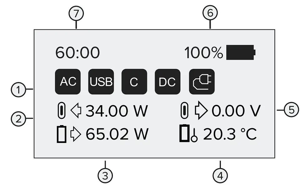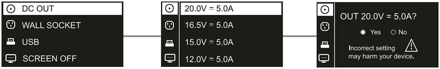 Omnicharge products with DC output operate on a specified voltage. Check your device specifications for the operating voltage before use. Improper use of DC output may harm your device. - Battery