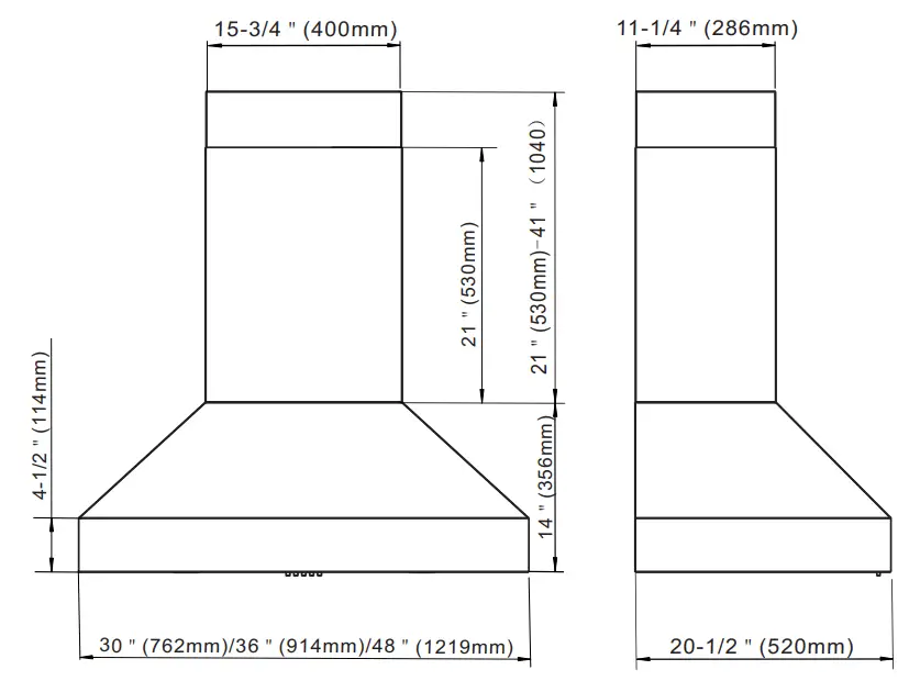 - The range hood has been designed only for residential use only for use to eliminate kitchen fumes.