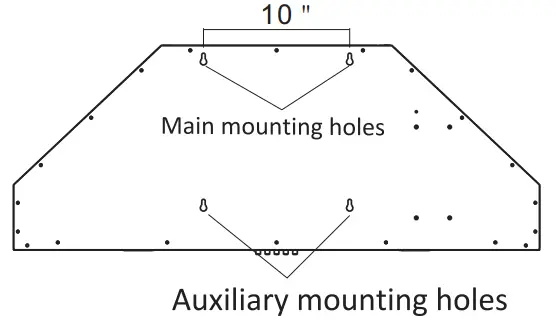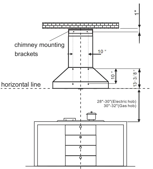 - Place chimney mounting brackets on the wall as shown about 1”(27mm) from the ceiling or upper limit aligning the center (notch)with the vertical reference line.