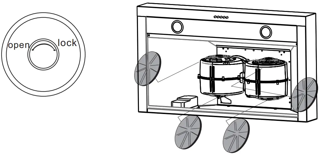 - Install the charcoal filter(not included), and lock it until the stop click is heard.