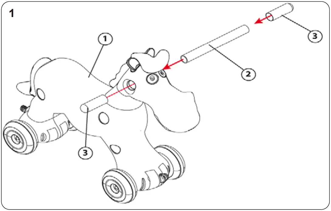 - Push the support bar (2) through the model (1).