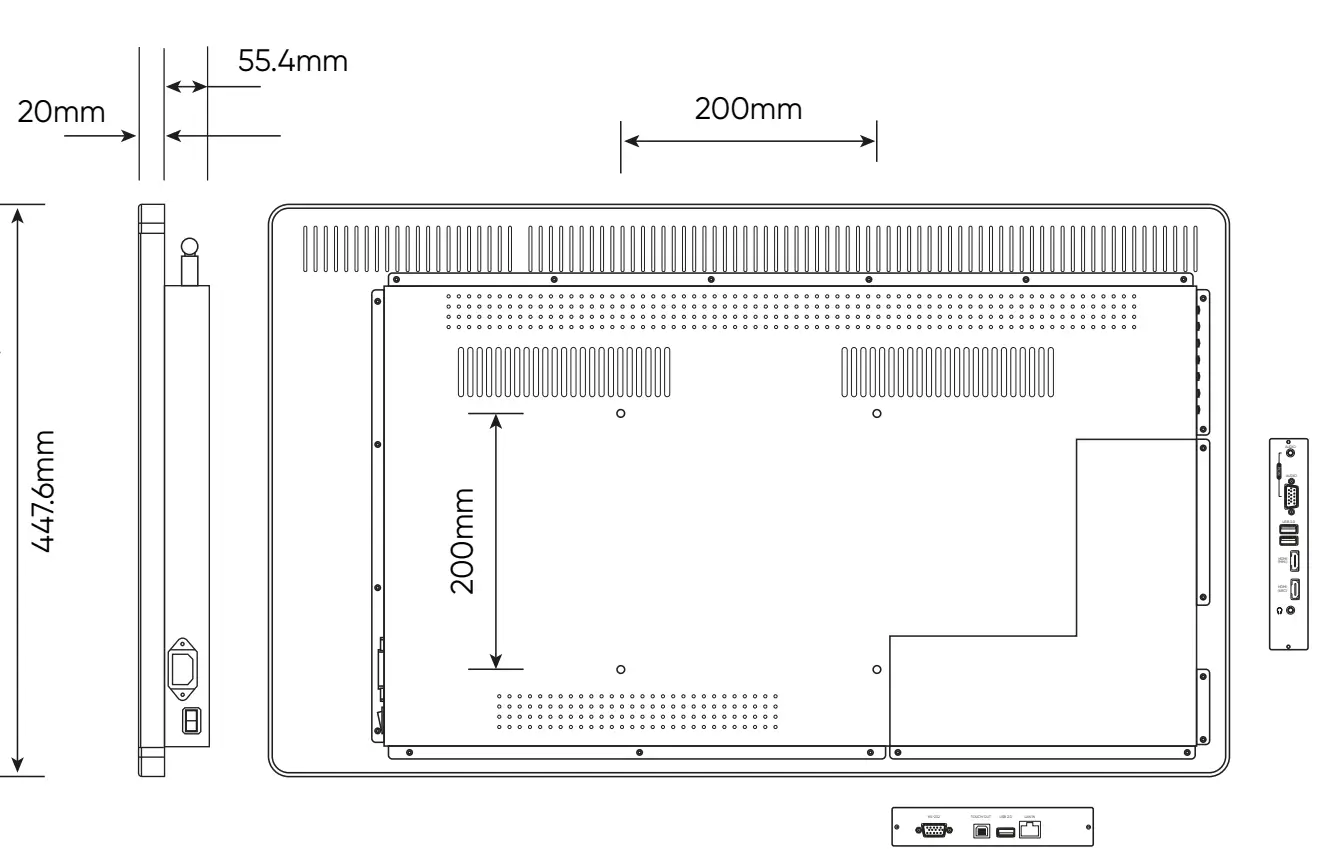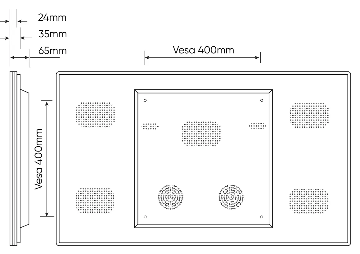| Monitor Size | 1010mm (w) x 597mm (h) x 65mm (d) |