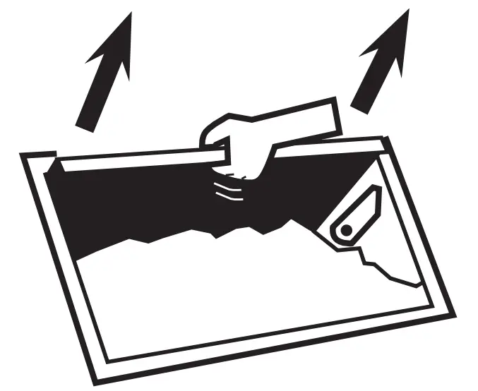 ![]() | Do NOT dig up at ice. Instead, break away “legs” that are holding bridges. Ice above will then fall. A falling ice bridge can cause paddle to lift. Keep head and face away from paddle handle to avoid injury |