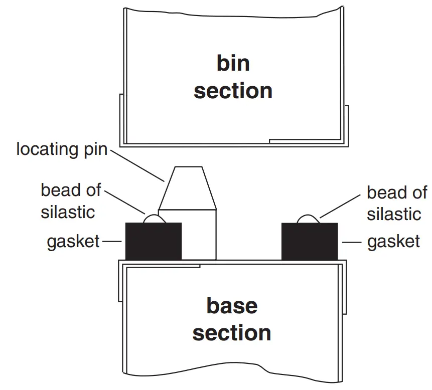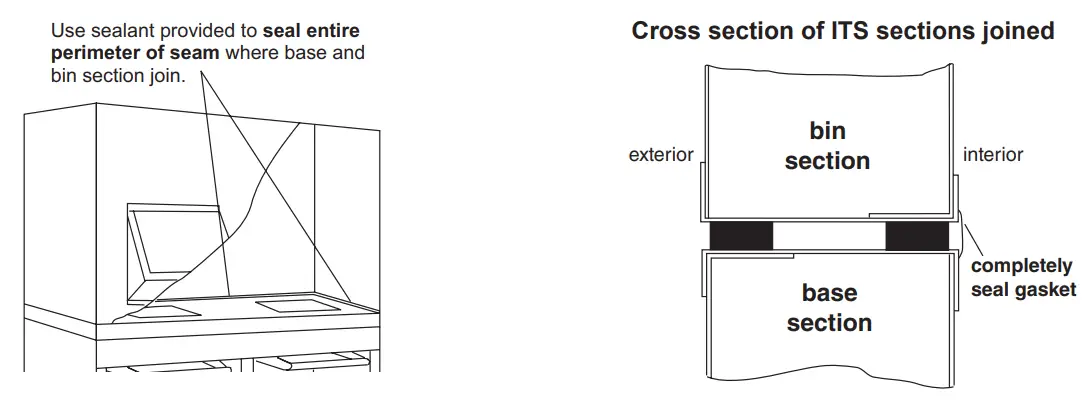 - Gain access through this opening and seal entire perimeter of seam between bin and base with provided sealant or equivalent.