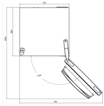 The unit’s door must be able to fully open as shown. Spare enough space for convenient opening of the doors and drawers.