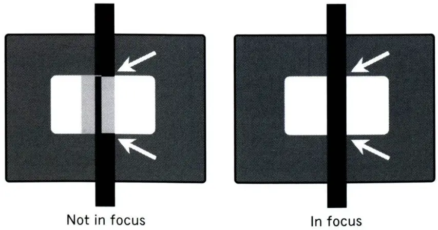 Quick and accurate focusing is easy. Just turn the focusing ring until the doubled images of your subject seen at the finder’s center converge into a single image.
