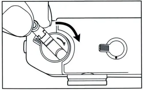 4. Turn the Battery Chamber Lid (23) clockwise until it closes firmly.