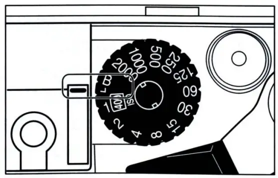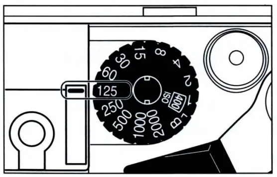 Caution:Make sure to set the film speed exactly at the detent, not in between, othewise proper shutter speed will not be shown in the viewfinder.