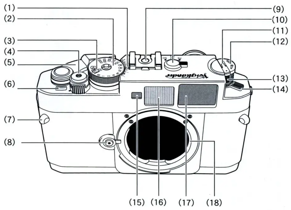 - With the Film Speed Ring (2) set at “B” position, the shutter will remain open for as long as the Shutter Release Button (4) is pressed.