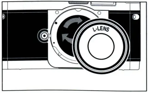 Align the lens mount screw with that of the M-Bayonet Adapter - Ring, then turn the lens clockwise.