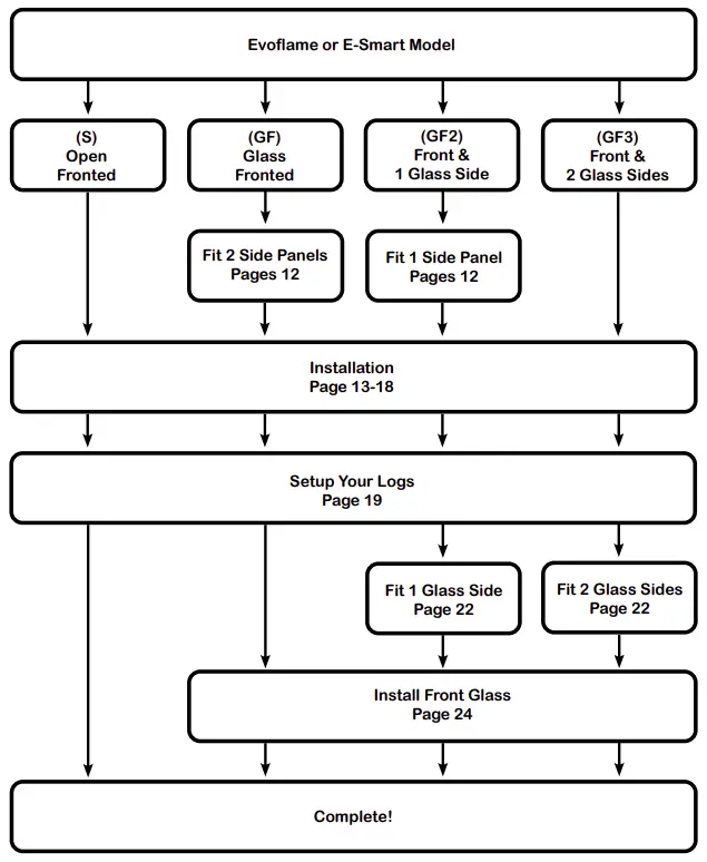 The model shown in these drawings is an E1030, however the same processes apply to all Evoflame and E-Smart models.