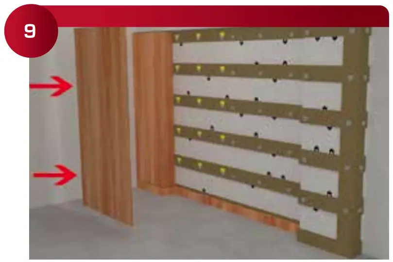 Preassemble the vertical furring corners (if any) and install them to use as a guide for the horizontal furring.