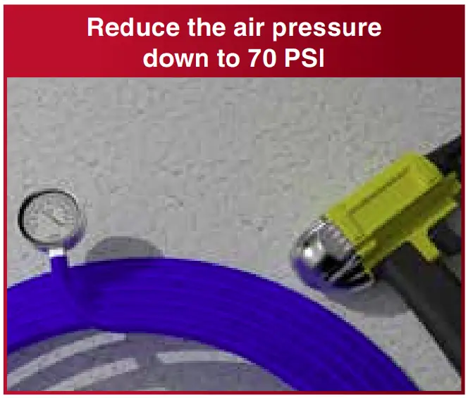 B. Reduce the air pressure down to 70 PSI.