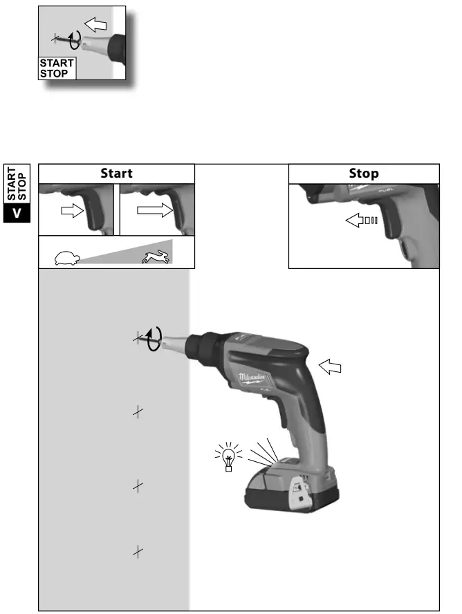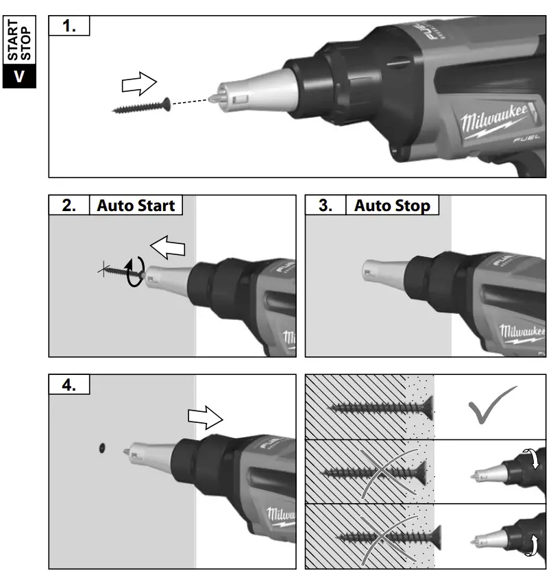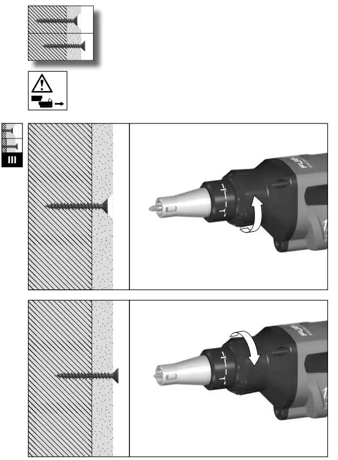 The screwdriver is suited for setting dry wall screws when fixing gypsum plaster boards to wood furring or metal furring.