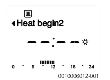 Mon-Fri (change switching times for all weekdays together) or Saturday … Select and confirmed Friday (change switching times for individual weekdays). The menu item Heat begin1 is displayed.