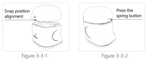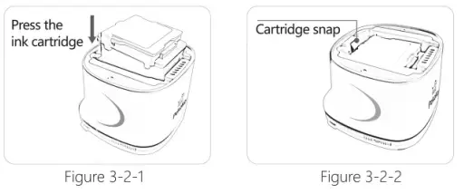 Note: The insertion angle should not be too large, try to be parallel to the printing product, otherwise the battery position may be broken. - Press the spring button on the back of the ink cartridge, and press the battery downwards at the same time, let the two card slots on the back of the battery slide into the corresponding grooves smoothly, then release the spring button to complete the battery installation, as shown in Figure 3-3-2.