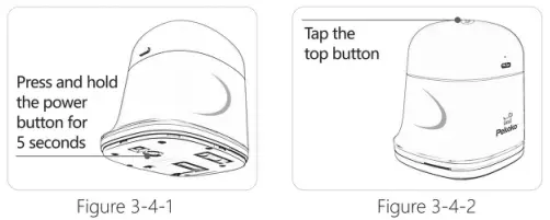 - Press and hold the boot button on the bottom for 5 seconds, the device will boot.