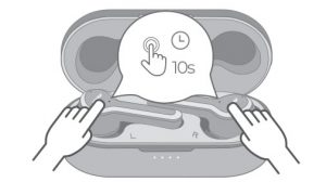 In the state if charging, simultaneously press and hold the MFB of both earbuds for 10 second. The LED light