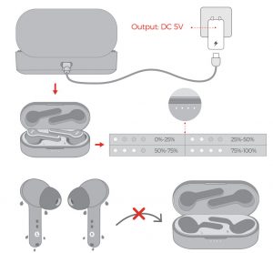EN: Do not put the earbuds in the charging case when the earbuds are wet.