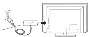 Connect one end of the USB cable into your Fire TV Stick Lite and the other end into the power adapter. Plug your Fire TV Stick Lite into the HDMI port on your TV, then plug the power adapter into a nearby outlet. Turn on your TV, then select the appropriate HDMI input.