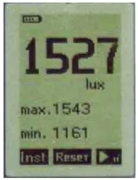 Once switched, the instrument displays twice a second the instantaneous value of illuminance expressed in Lux or fc. This value gives information about illuminance local conditions.