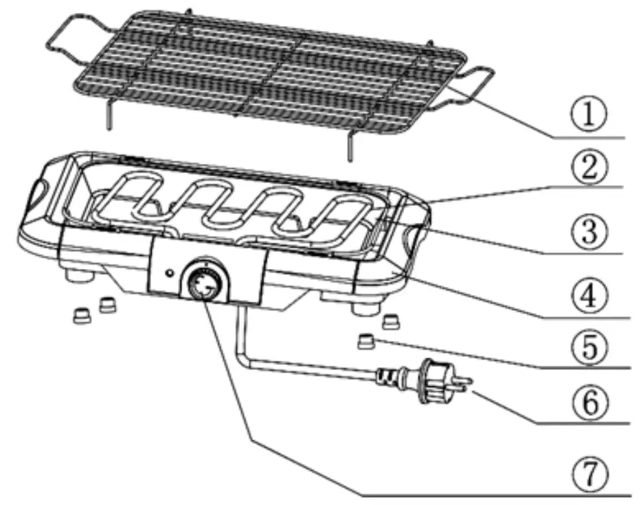 - The device can be used for cooking sausages, fish etc. It is forbidden to cook food with flammable materials such as charcoal and wood. Place the food directly on the grill. Donot cover the grill with plastic or metal foil.