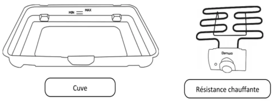 – Do not immerse the plug, the power cord, the heating elements and the thermostatic box in any liquid.