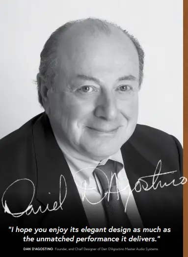 Dan D’Agostino Master Audio Systems is a registered trademark of Dan D’Agostino Master Audio Systems, LLC. The information in this owner’s manual is subject to change without notice. Current Version 1.0 of this manual was produced by the Dan D’Agostino Master Audio Systems, LLC engineering, sales and marketing departments.