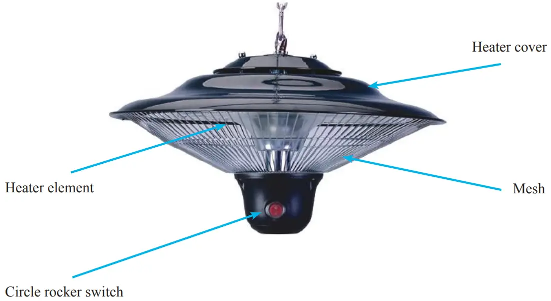 B. The Hook on the ceiling hanging the Patio Heater must be able to undertake a weight 3 or 4 times that of the Patio Heater itself.