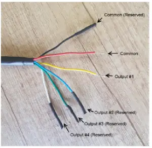 - Green: Output #3 (Reserved for future use. Remove the temporary heat shrink if you will use this wire)