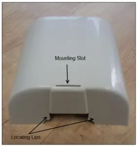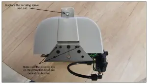 Figure 17: Protection Hood - Push the hood down making sure that the locating lips are behind the stainless steel bracket as shown in Figure 18 below. Do not force the hood down and make sure a gap is retained between the receiver module and the hood.